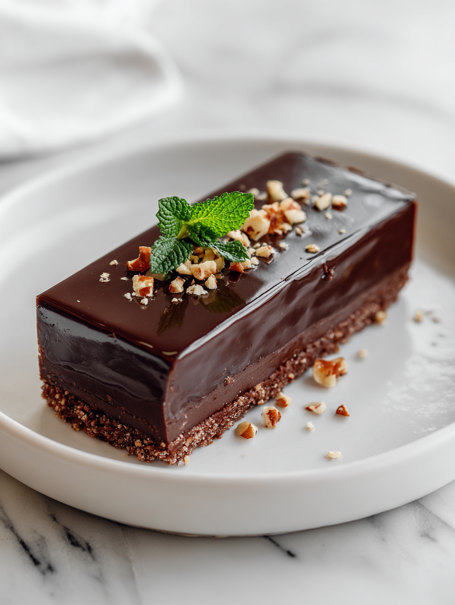 • Store the sliced chocolate treat in an airtight container in the fridge for up to 3 days. The chocolate will firm up further, maintaining that glossy finish.