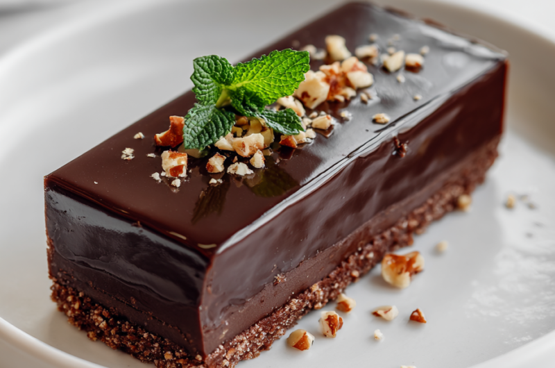 • Store the sliced chocolate treat in an airtight container in the fridge for up to 3 days. The chocolate will firm up further, maintaining that glossy finish.