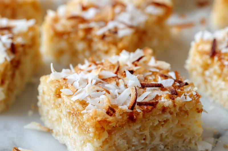 This recipe is inspired by my childhood summers spent at my grandmother’s house, where she always kept a secret stash of these coconut bars in her old tin. The simplicity of no-bake and the intense coconut flavor remind me of lazy afternoons, the smell of toasted coconut filling the air, and the joy of sharing something homemade that tastes like nostalgia.